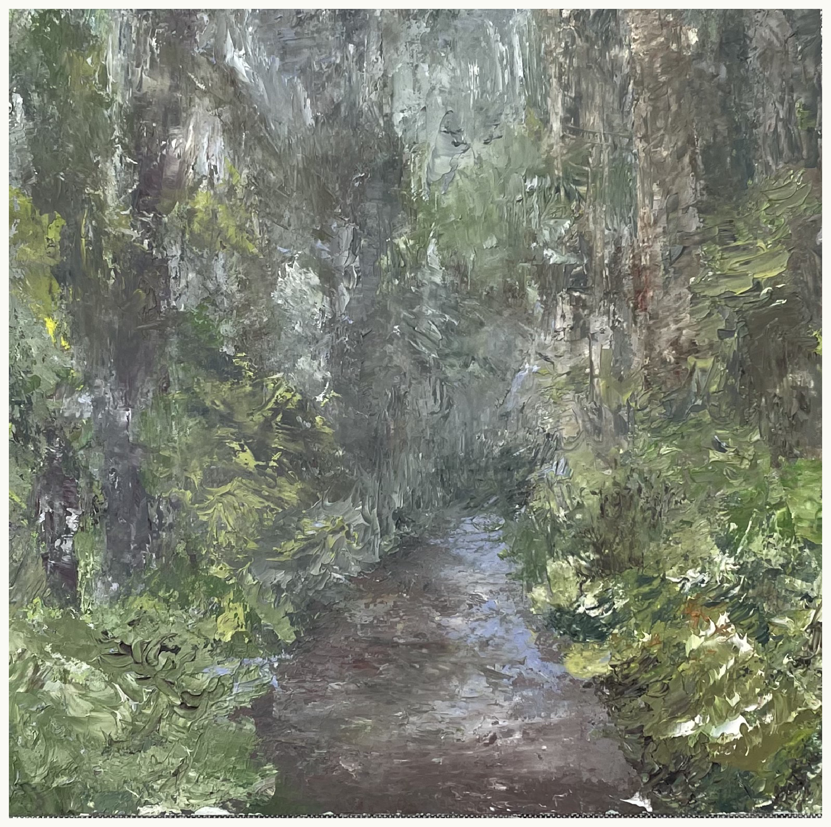 The landscapes in this series are not meant to depict a specific location, but rather an emotional one. Through loosely rendered ponds, trees, and shifting light, the paintings reflect the way certain places live within us—shaped as much by memory and feeling as by reality.